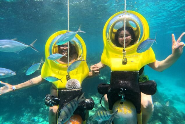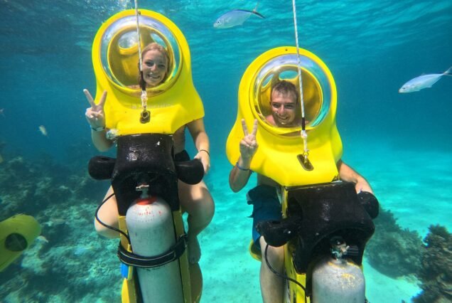 Con tu propio ScubaDoo, descenderás suavemente a unos pocos metros bajo la superficie, respirando con total normalidad dentro de una cúpula de aire mientras te desplazas entre peces tropicales, corales coloridos y aguas cristalinas del Caribe. No es necesario tener experiencia previa, ya que recibirás una instrucción básica antes de comenzar y estarás acompañado por instructores profesionales en todo momento.