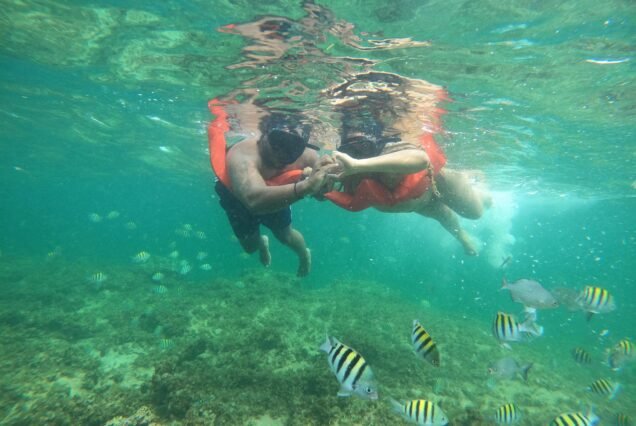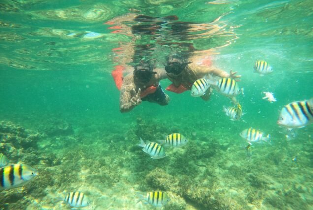 • Snorkeling en zona coralina con bancos de peces , Equipo de snorkeling